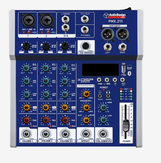 Tässä mikserissä on kaikki nykypäivän herkut kuten langaton musiikin soitto Bluetoothilla, laadukkaat kaiku ja muut efektit, sekä USB-tikkusoitin ja suora liitäntä USB:llä tietokoneeseen. AudioDesignPRO PMX.211TK mikseri toslink USB/FX/BT:een saa USB-liitännällä tietokoneeseen ja voit soittaa musiikkia tietokoneelta suoraan USB-liitännän kautta ilman muita kaapeleita tietokoneen ja mikserin välillä. Myös kolmialueinen EQ (low, middle, treble säädöt) on tärkeässä osassa miksatessa. Voit myös halutessasi tallentaa soiton ja laulun mikseriin liitetylle USB-tikulle (max. koko 32 gb) tai suoraan tietokoneellesi USB-johdolla.