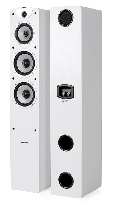 Kaiuttimet ovat saatavilla valkoisina, ja ne sopivat hyvin yhteen hopeanväristen kaiutinelementtien kanssa, jotka kätkeytyvät kaiuttimen etukankaan taakse. Etupuolelta löytyy kaksi 6,5 tuuman bassoa, 5,25 tuuman keskiääni sekä diskantti.