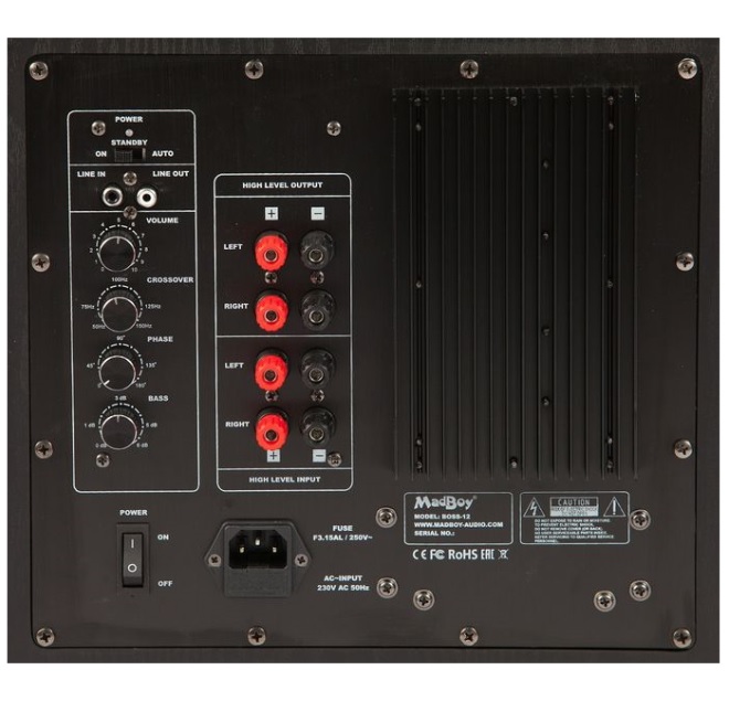 Voit uskotella itsellesi että sinulla on hyväsoundinen karaoke- tai kotiteatterilaitteisto, mutta tosiasiassa et tiedä mistä jäät paitsi, ennenkuin kokeilet MadBoy BOSS-12 subwooferia. MadBoy BOSS-12 on puhtaasti potkiva aktiivibasso, joka antaa laitteistollesi viimeisen silauksen, tuomalla soundiin matalan potkun joka värisee sisuskaluissasi.